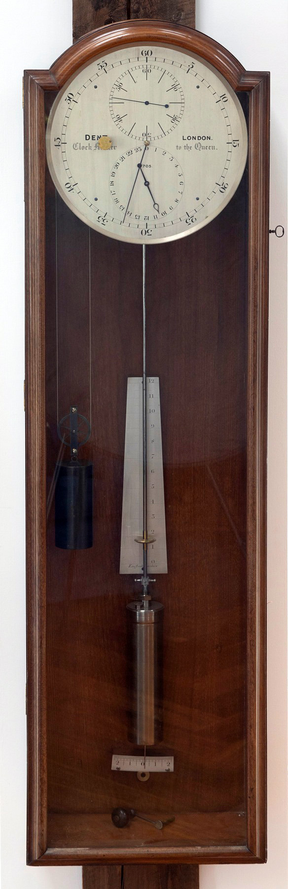 E.J. Dent eight day regulator clock, c1843, dial signed: "Dent, London, Clockmaker to the Queen" and numbered: "705". 12-inch 24-hr silvered dial with subsidiary seconds dial.